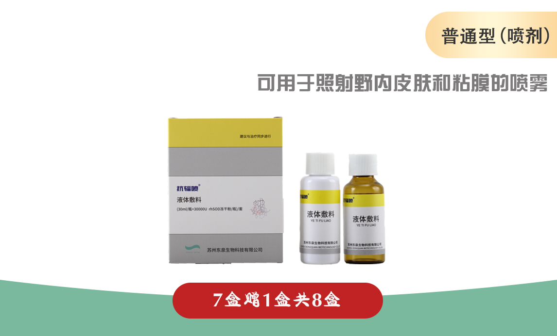 放射治療期間,照射野內(nèi)皮膚和粘膜防護(hù)、修復(fù),可使用抗輻噴(普通型)噴劑: